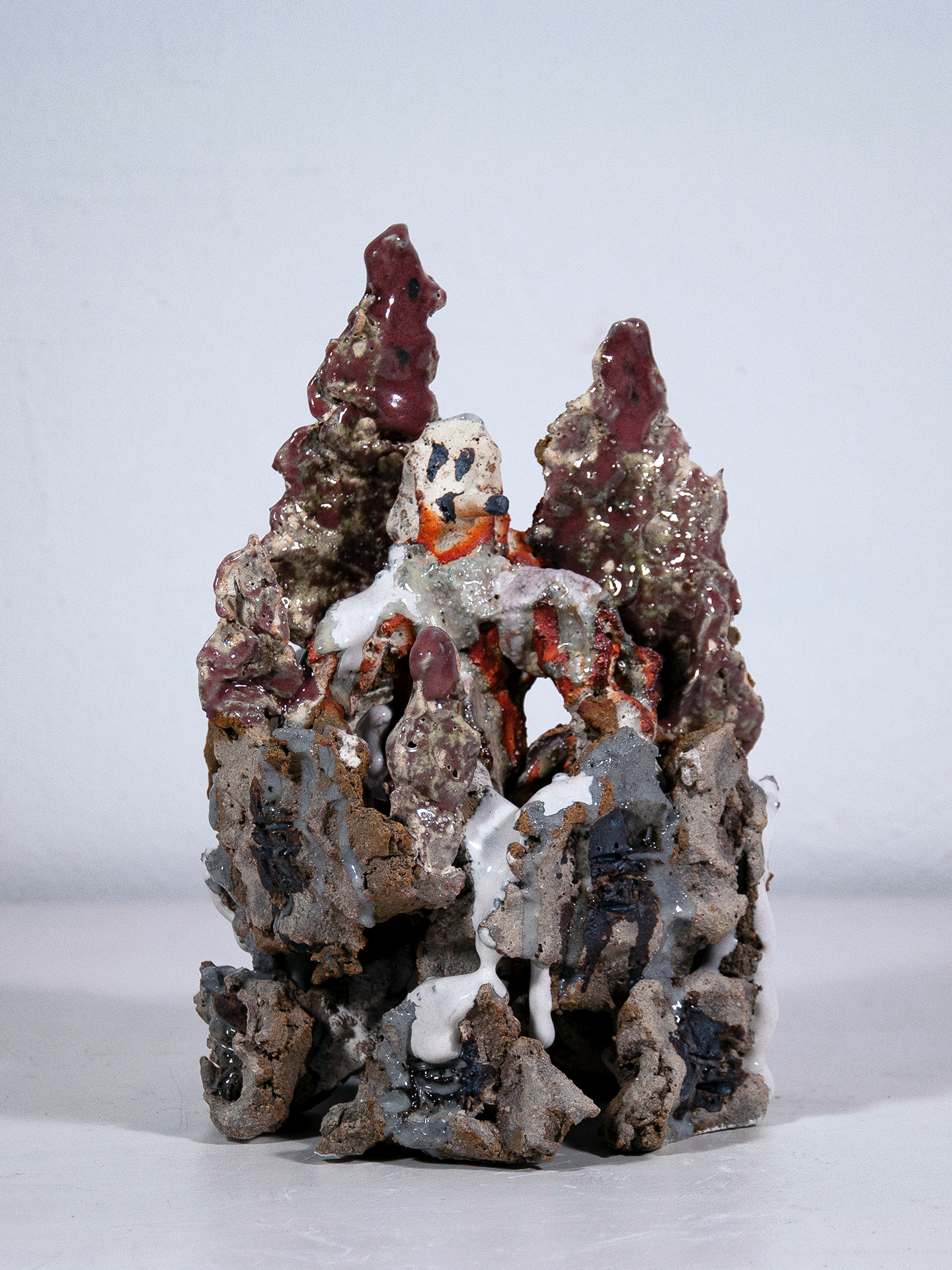 Je regarde de quelle manière les petits moments et les émotions qui jalonnent la vie quotidienne, tels l’amour, la haine ou la colère, se relient aux crises sociétales profondes (inégalités, violence, conflits ou changement climatique…). Mes sculptures céramiques, dont l’objet est de réinterpréter les états humains et les phénomènes sociaux, créent un monde nouveau duquel émergent des questions relatives aux correspondances pouvant réellement exister entre ces deux échelles de la vie quotidienne et d’un monde plus large.