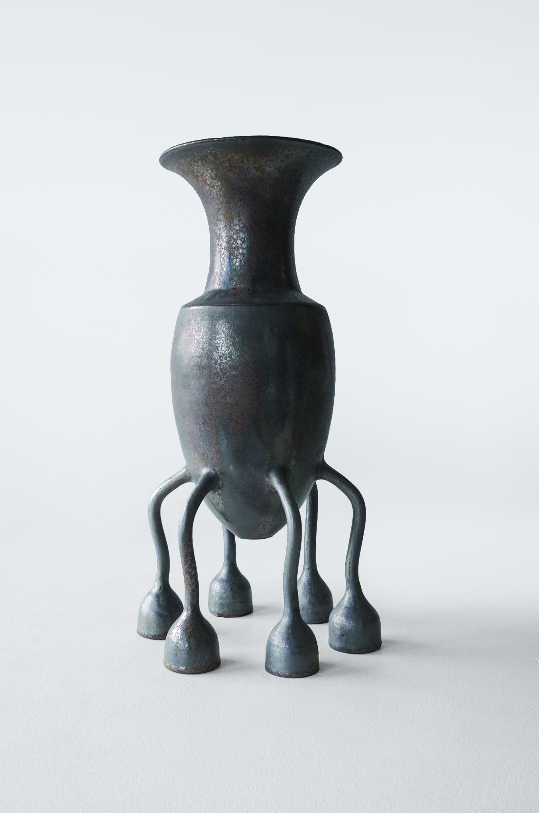 It was only very recently, in 2023, that ceramics caught the eye of Robin Kerr. He systematizes his formal approach. He starts with a common form, such as a vase or pot. Once this basic architecture has been acquired, he applies himself to making it lose its functionality by distorting it and adding more handles than necessary. It's all about accumulation. This abundance of handles is rare in contemporary ceramics. While his work inevitably brings to mind George E. Ohr, Jeanne Bonnefoy Mercuriali and even Clémentine Dupré, recent decades have tended to eschew this difficulty in favor, it is said, of formal purity.(...)